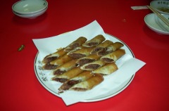 ほんのりシナモンの香りが漂う、バナナとチョコのペースト状のものを巻いて揚げた意外とまともなデザートでした。